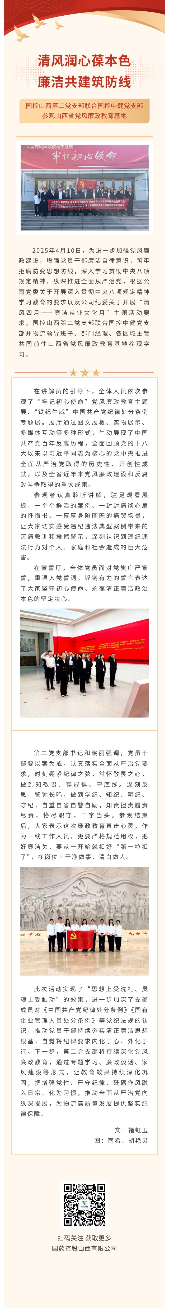 清风润心葆本色 廉洁共建筑防线 ——国控山西第二党支部联合国控中健党支部参观山西省党风廉政教育基地