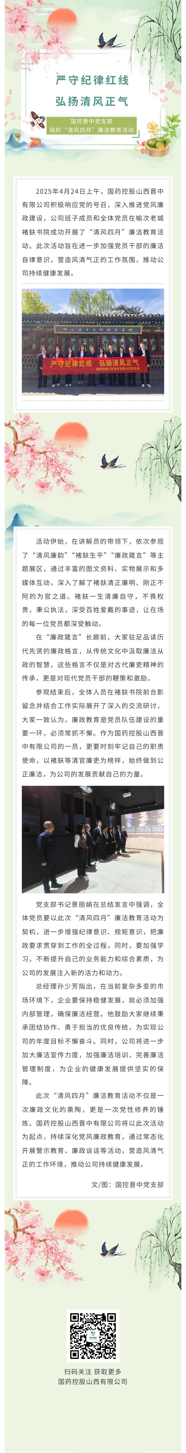 严守纪律红线 弘扬清风正气——国控晋中党支部组织“清风四月”廉洁教育活动