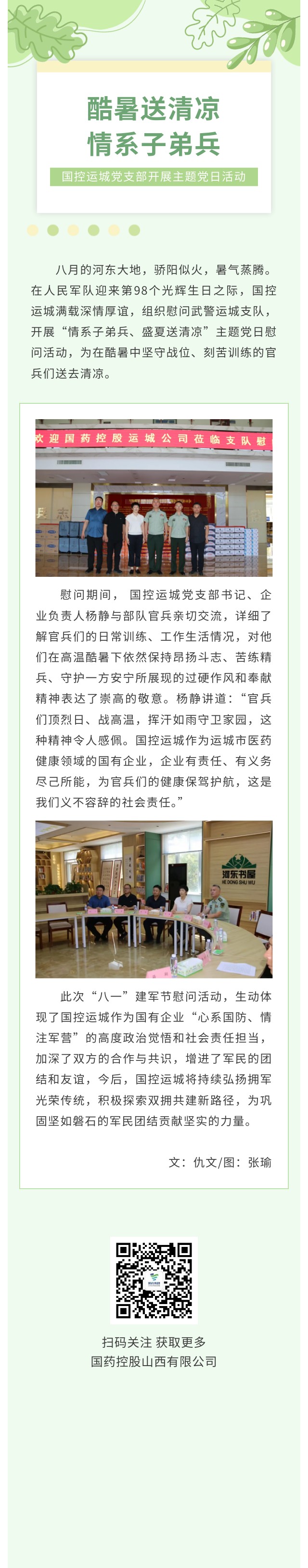 酷暑送清凉 情系子弟兵 ——国控运城党支部开展主题党日活动