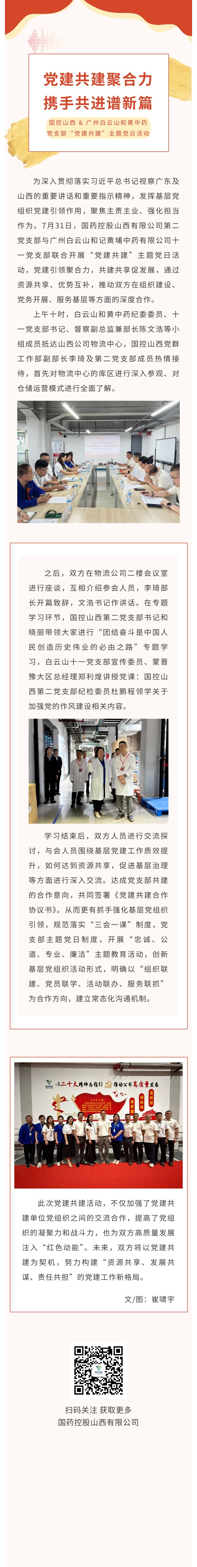 党建共建聚合力 携手共进谱新篇 ——国控山西 & 广州白云山和黄中药党支部“党建共建”主题党日活动