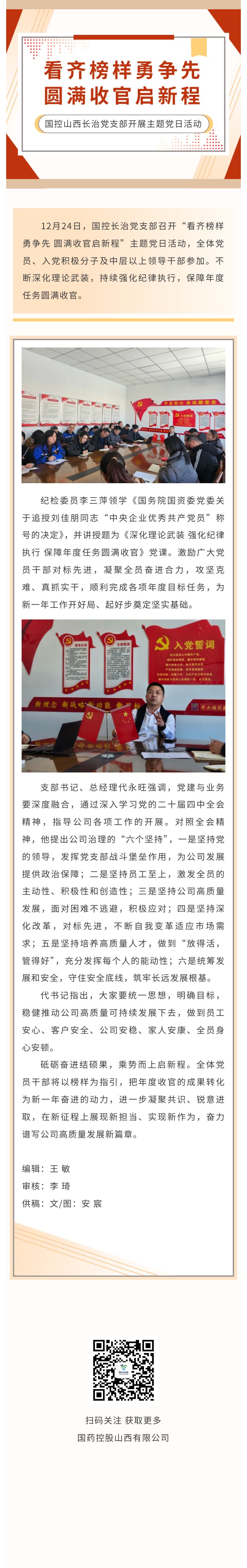 看齐榜样勇争先 圆满收官启新程 ——国控长治党支部开展主题党日活动