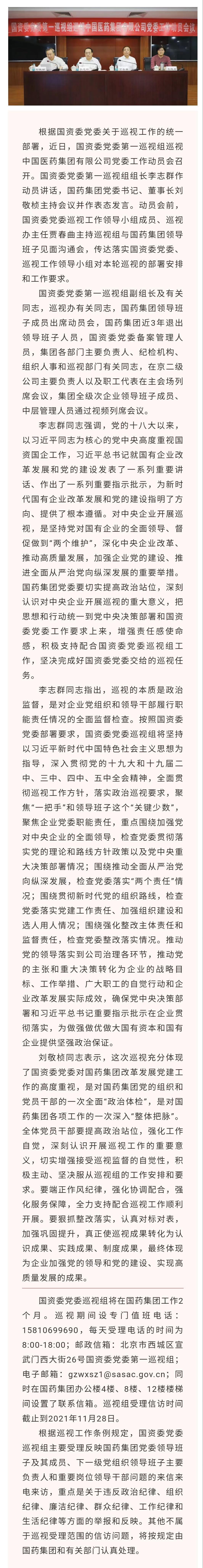 国资委党委第一巡视组巡视中国医药集团有限公司党委工作动员会召开