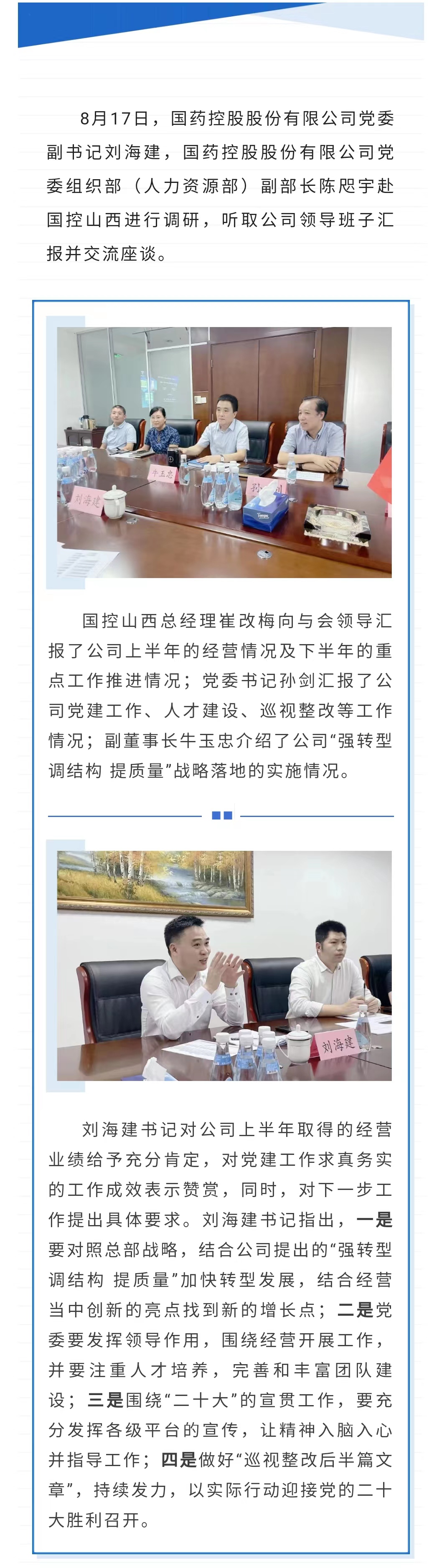 国药控股党委副书记刘海建一行赴国控山西调研