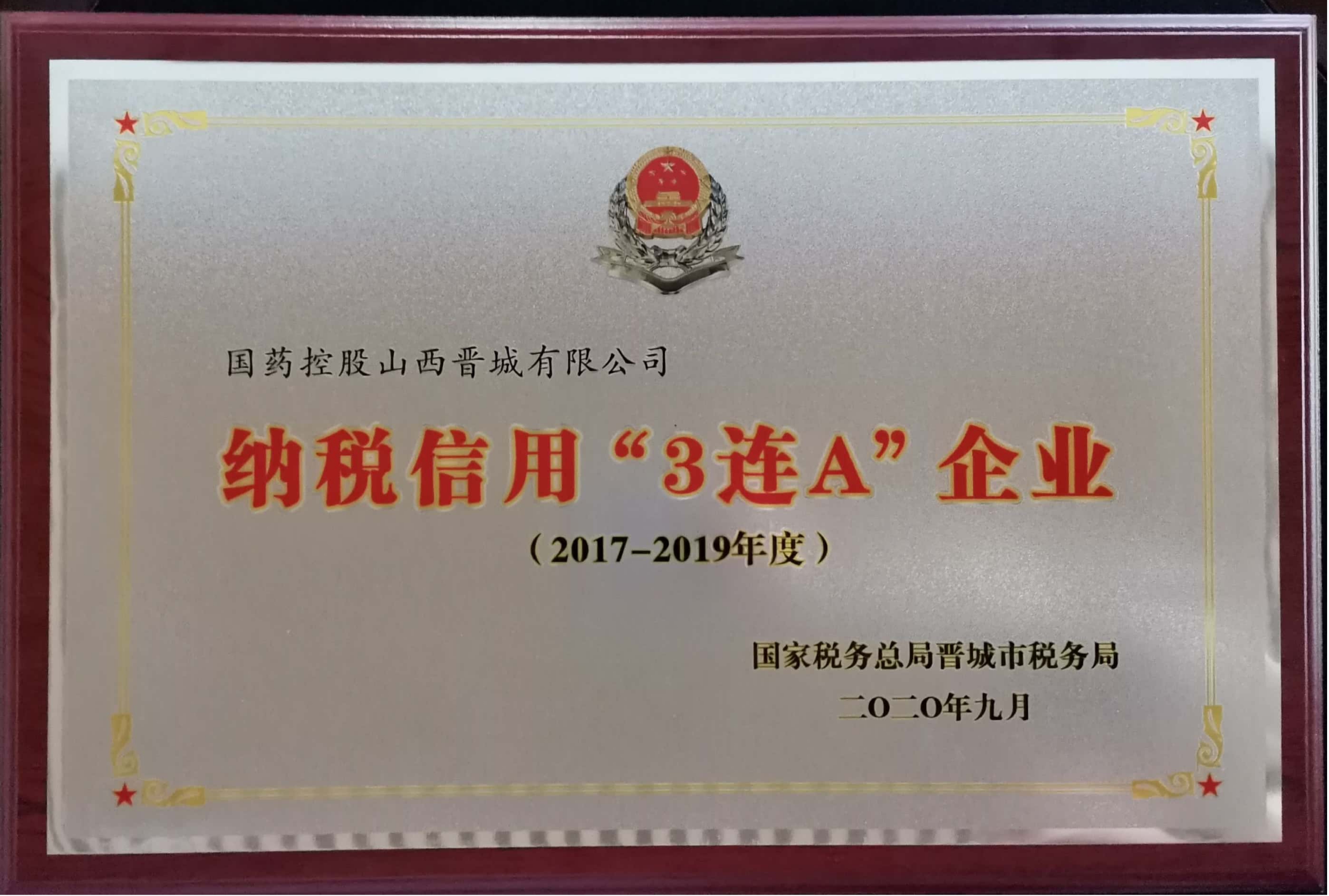 近日,国家税务总局晋城市税务局举办纳税信用评价“3连A企业”评选活动,国控晋城公司荣获“2017-2019年度纳税信用‘3连A’企业”荣誉称号。