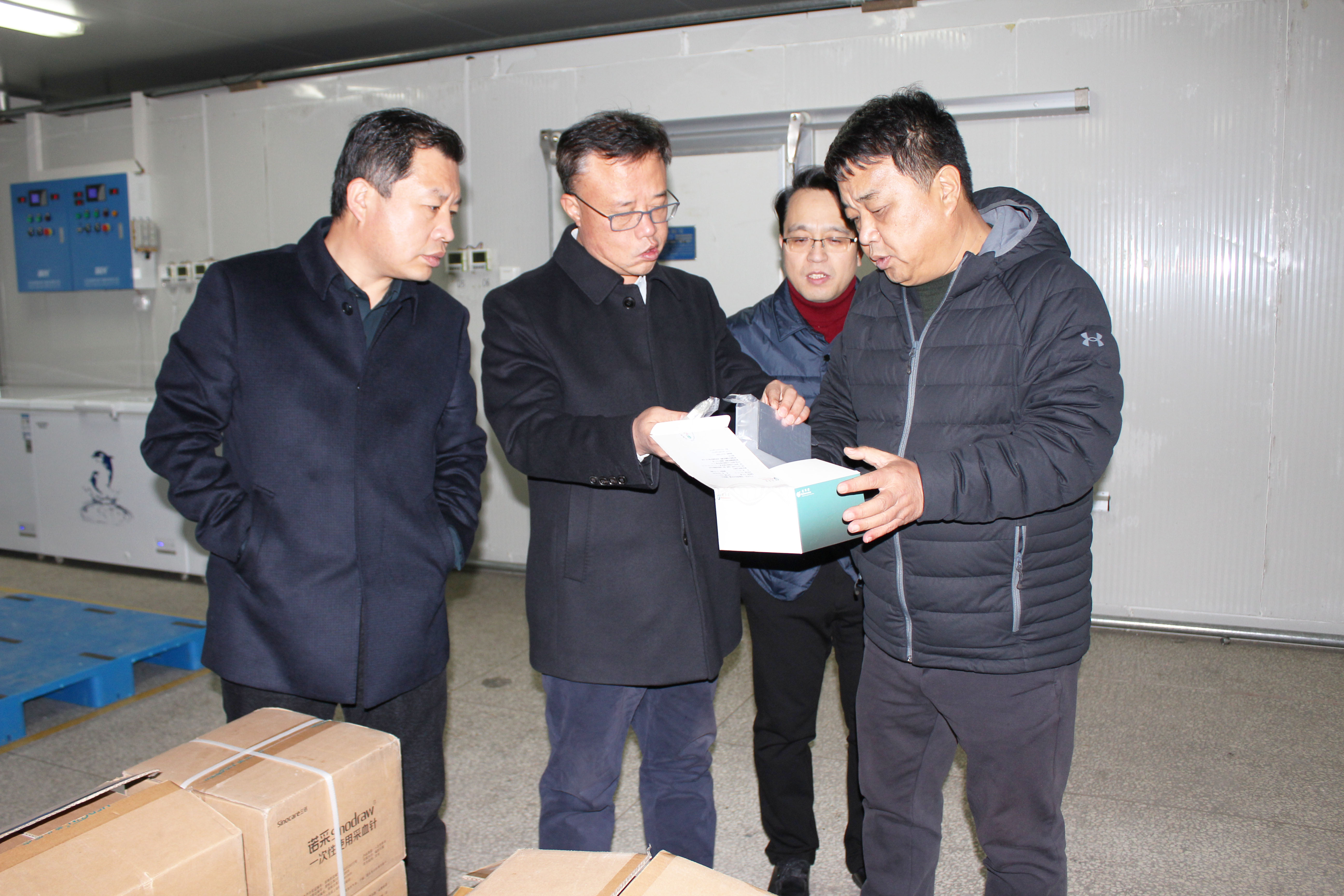 12月2日,长治市工业和信息化局局长杨鸿斌、副局长马国永等一行莅临国控山西长治公司对应急医药物资储备情况做调研指导。