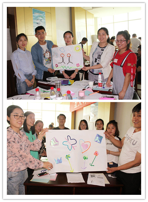 首先,老师以报数形式将大家随机分组。“起队名”、“喊口号”、“选组长”……之后,由每组的“形象代言人”向全体学员展示组队情况。