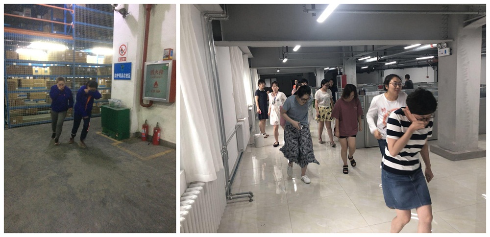 6月21日下午15时,设施设备管理员魏庆利在对讲机里发出“报告张总、一楼集货东区发生火情,请指示”的警报,物流中心副总经理、安全办公室副组长张震宇立即发出指令,要求疏散物流中心全体人员,各部门收到指令后当即组织员工进行疏散、逃生。各小组的组长各尽其职,指导员工有序疏散,灭火组成员手持灭火器第一时间到火情发生地控制火源。演练完毕后,时任物流中心总经理康愷,副总经理张震宇分别对此次逃生演练进行了点评,在肯定员工逃生有序、路线清晰的同时,指出此次演练中的不足之处。