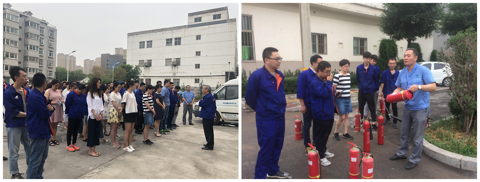 逃生演练结束后,在副总经理张震宇的带领下,所有新员工进行了干粉灭火器与二氧化碳灭火器灭火实操演练,新员工极高的参与度和积极主动的学习态度得到了大家的认可。