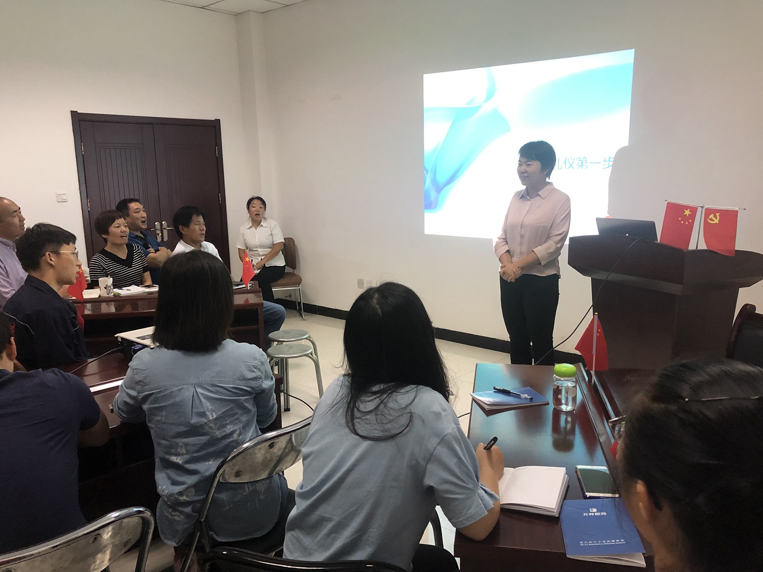 继9月28日徒步盐湖毅行活动之后,9月29日,国药控股山西有限公司人力资源部部长、国药大学讲师姚晓霞及人合正道培训师巩企翔莅临运城分公司对公司全员进行了职场礼仪培训及团体建设训练。