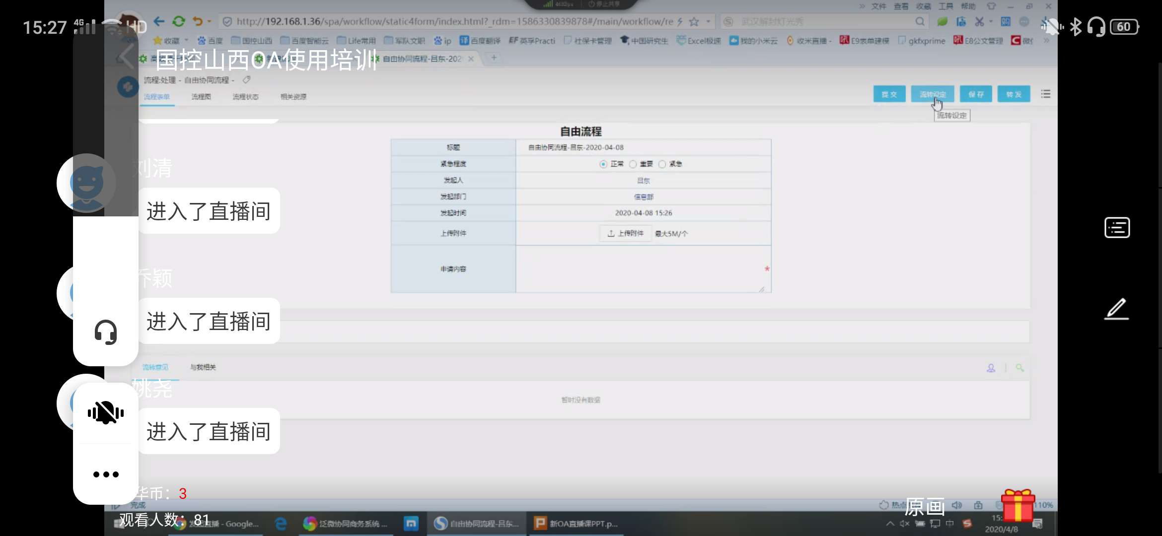 此次培训分两场进行。4月7日,国药控股山西阳泉有限公司国药大药房东大街店,通过平台进行零售系统日常操作培训;4月8日,面向山西公司全体员工进行新版OA使用操作培训。