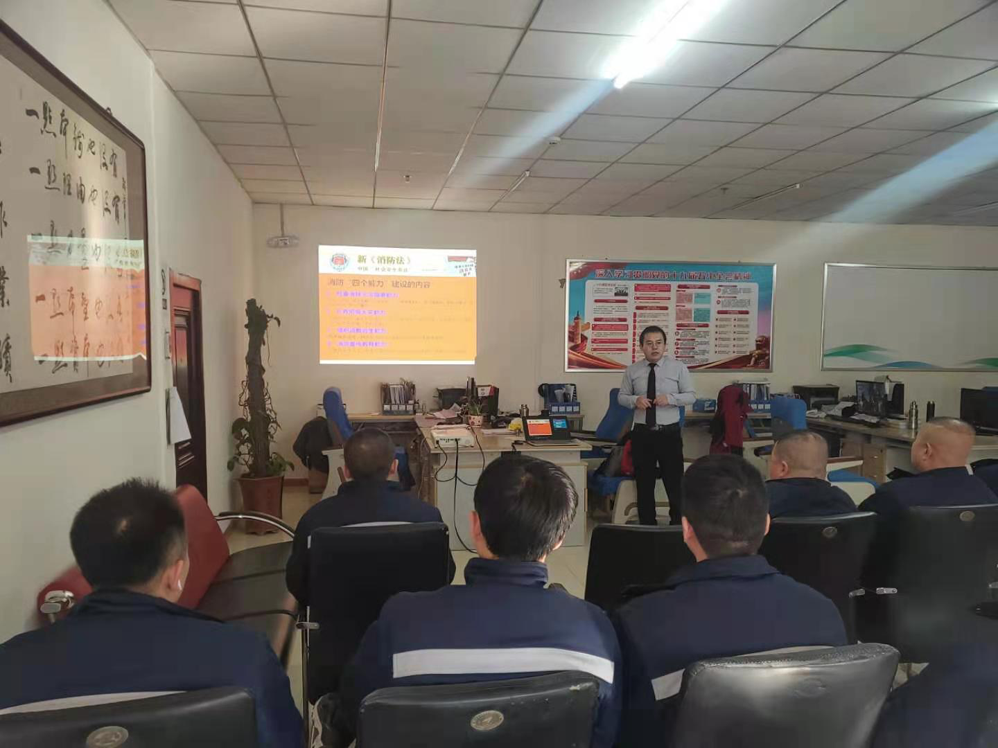 为切实增强员工消防安全意识和应急处突能力,12月21日,大同分公司特邀世安消防科技有限公司郭雨主任,在物流部组织开展消防安全培训和应急演练工作。