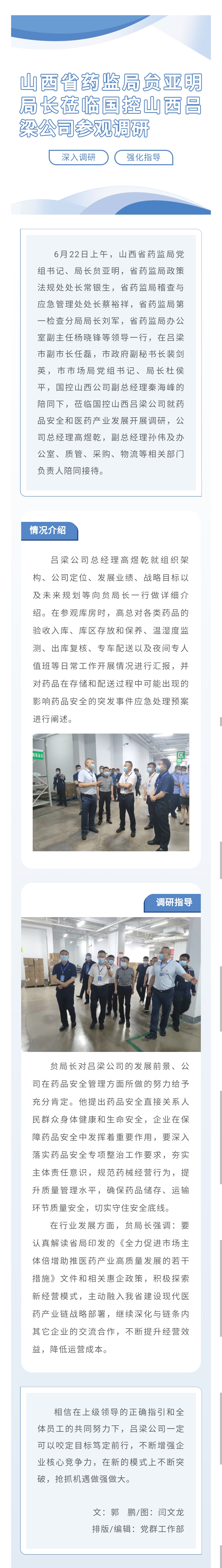 山西省药监局贠亚明局长莅临国控山西吕梁公司参观调研
