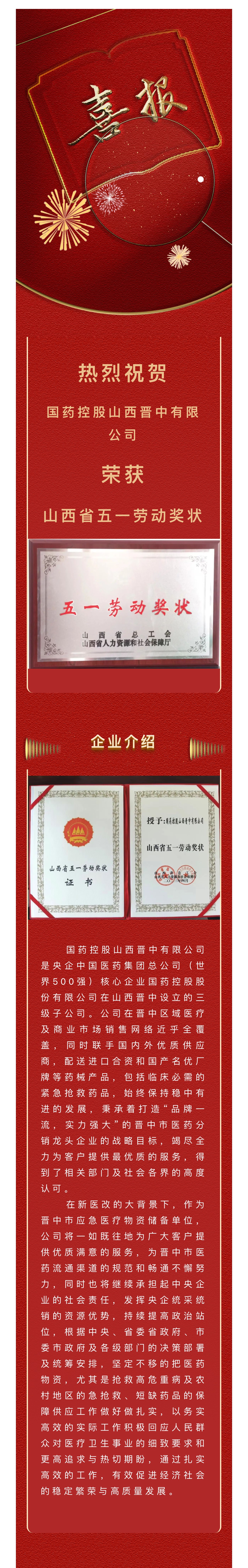 热烈祝贺国药控股山西晋中有限公司荣获山西省五一劳动奖状