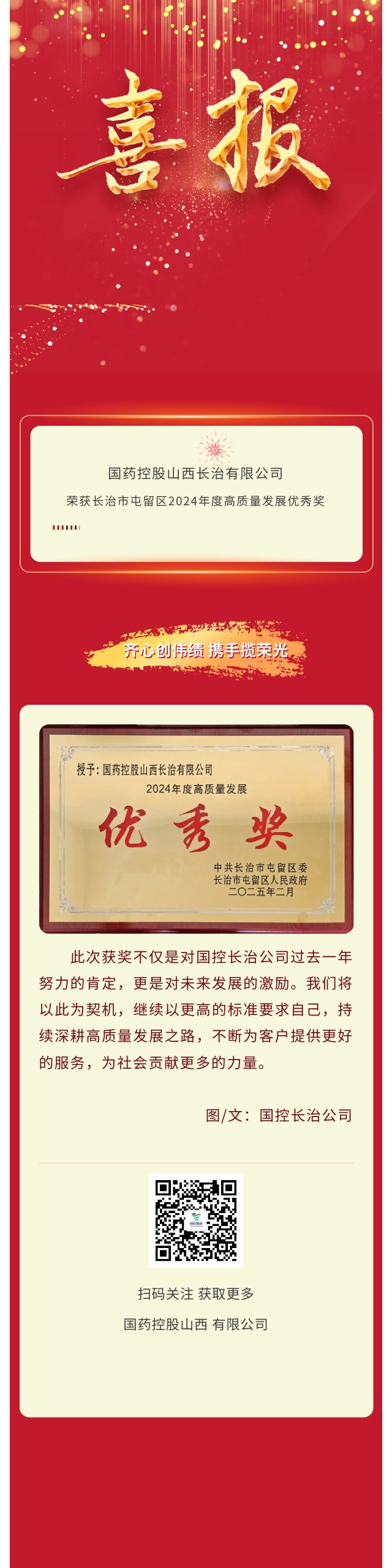 喜报-国药控股山西长治有限公司荣获长治市屯留区2024年度高质量发展优秀奖