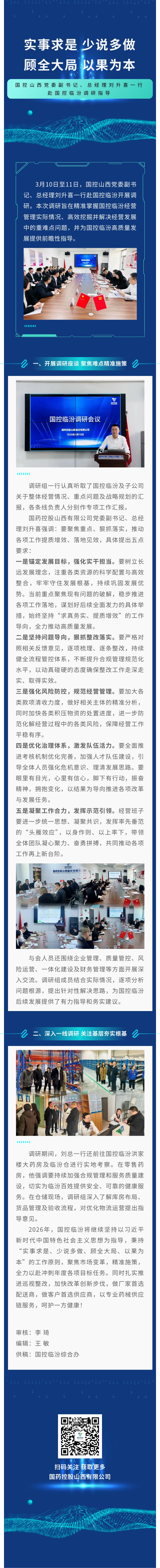 实事求是 少说多做 顾全大局 以果为本 ——国控山西党委副书记、总经理刘升喜一行赴国控临汾调研指导